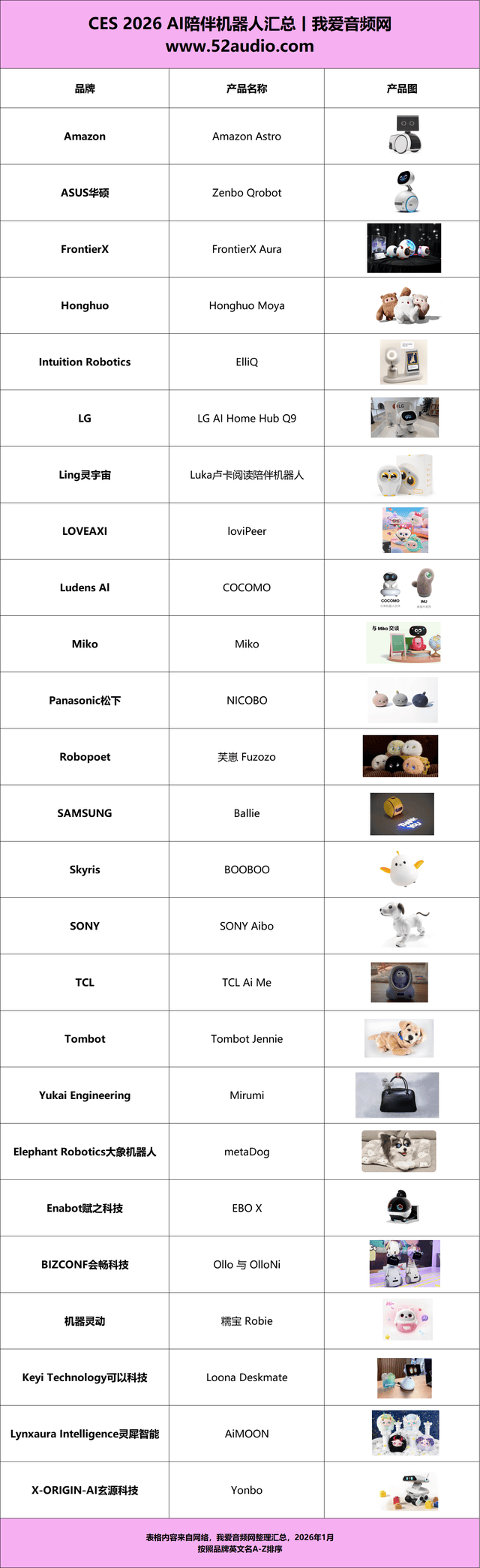 此篇文章,我爱音频网按照市场报道,汇总拾掇了 CES 2026 展上表态的 25 大品牌旗下陪同机械人产物,以及他们的细致功能特点,带大师一路看看目前陪同机械人的最新动态。此前我爱音频网还分享了CES 2026 AI智能眼镜~。